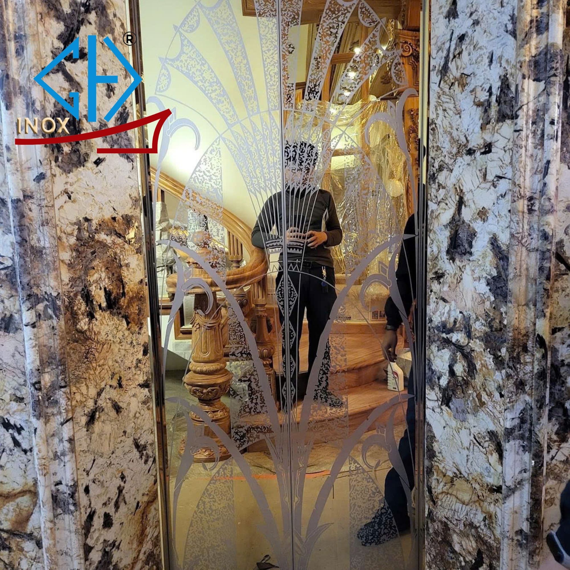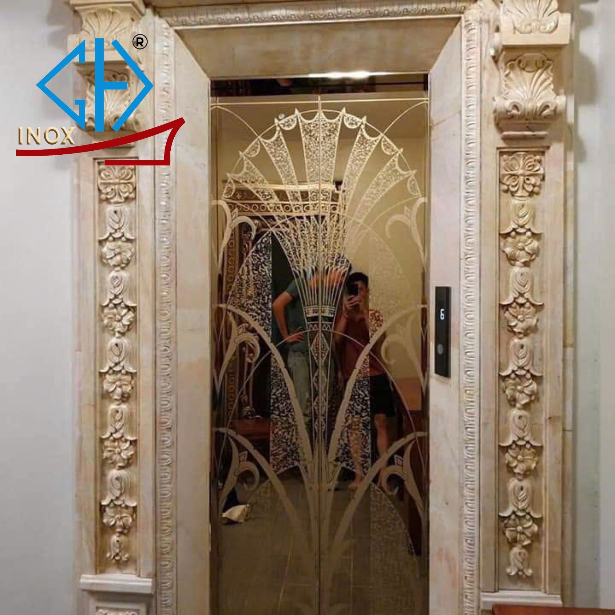 INOX CỬA TẦNG THANG MÁY - HOA VĂN RẺ QUẠT